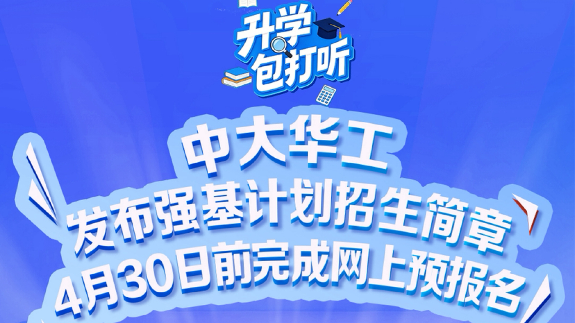 中大华工发布强基计划招生简章 4月30日前完成网上预报名