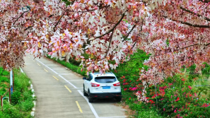 黄花风铃木、簕杜鹃与高铁共舞,科学公园观景台见证城市浪漫