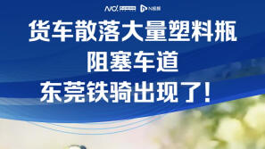 货车散落塑料瓶导致车道拥堵,东莞铁骑现身了