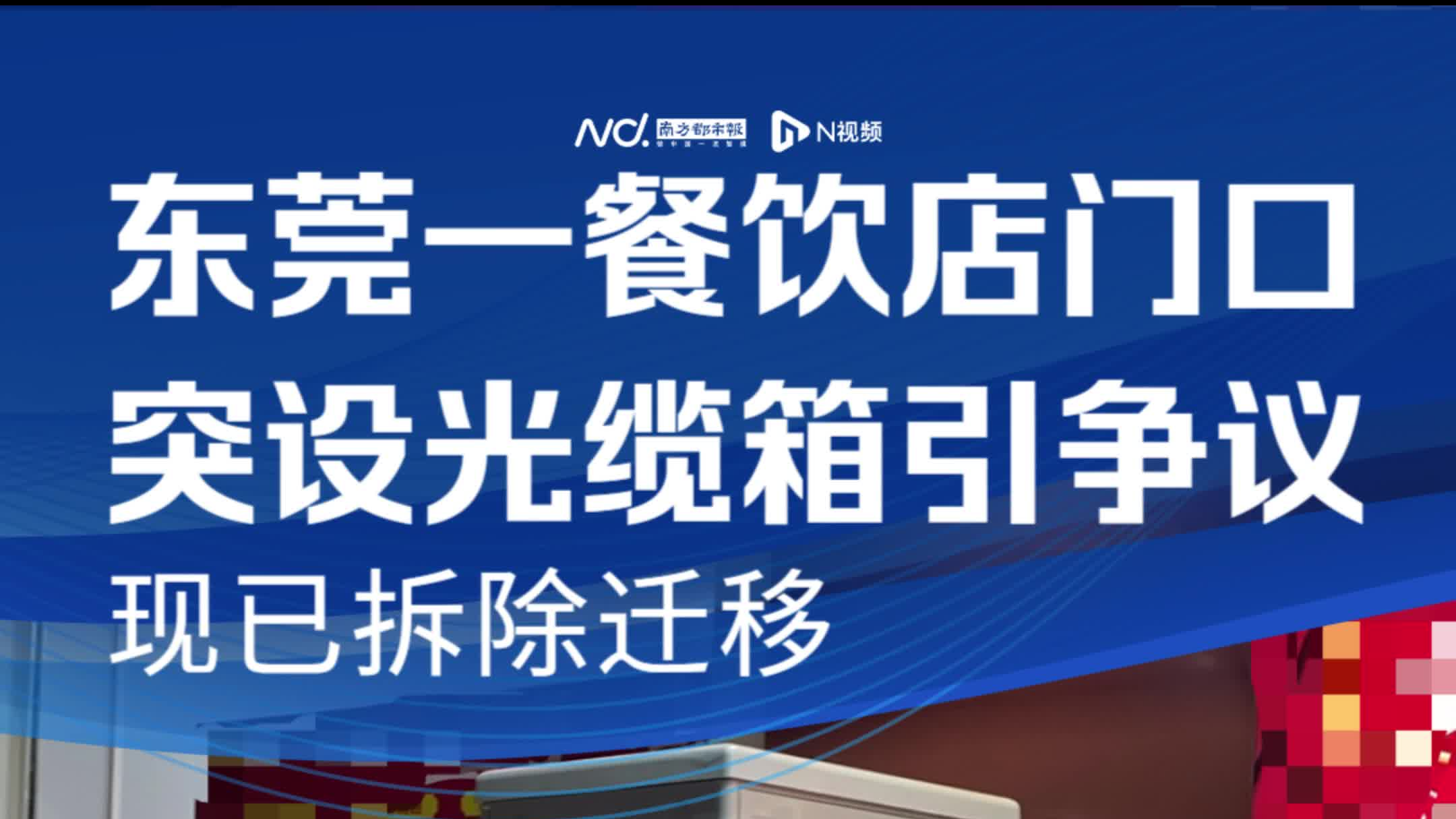 东莞一餐饮店门前突然被装置光缆箱,当地协调后已拆除迁移