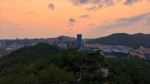 城市与山林共舞,苍龙阁下晚霞如画