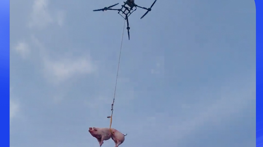 广东一地村民用无人机吊猪羊上山祭祖:现在有高科技很方便