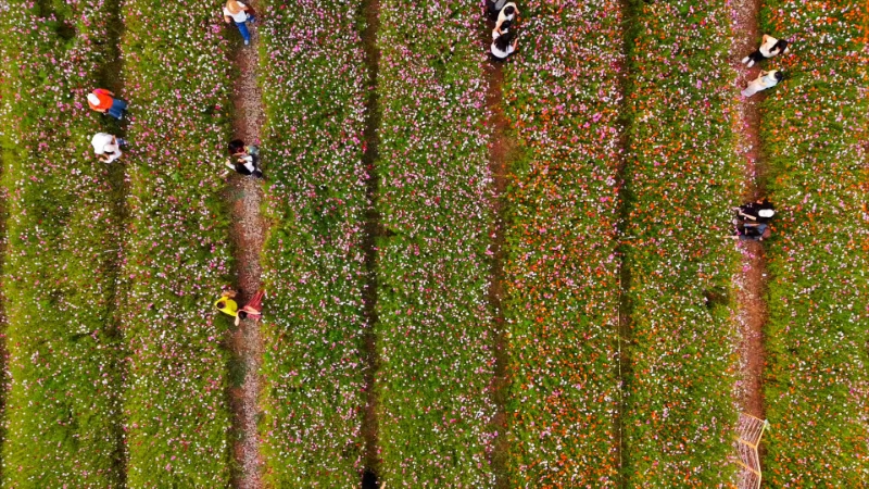 广州白云:白云湖波斯菊花绽放美如画