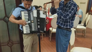 《红星照我去战斗》在世华会我手风琴和书画家易向荣老师合奏