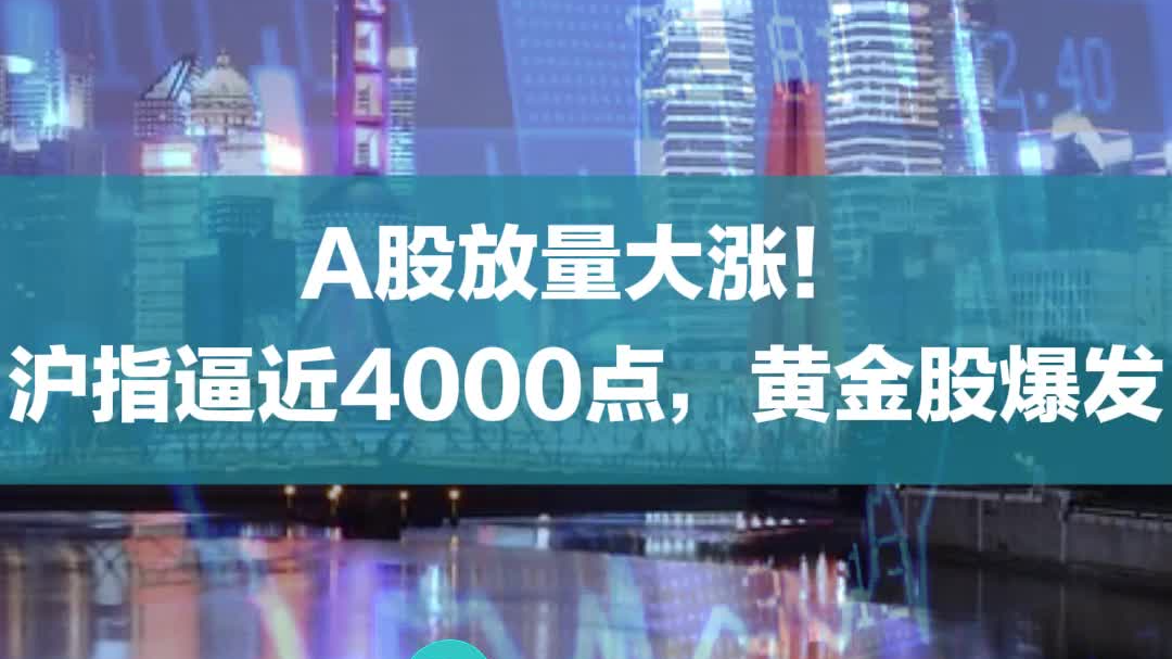 A股放量大涨!沪指逼近4000点,黄金股爆发