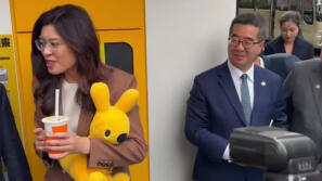 郑丽文在上海体验无人机点奶茶,笑称“要把美团带回台湾”
