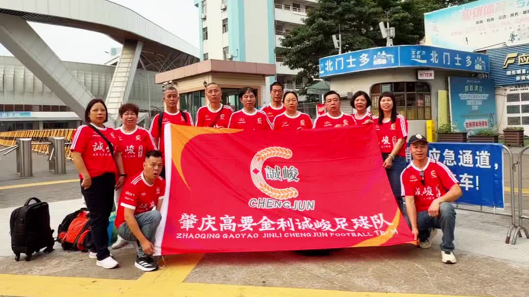 肇庆高要金利诚峻足球队球迷集合前往永州道县