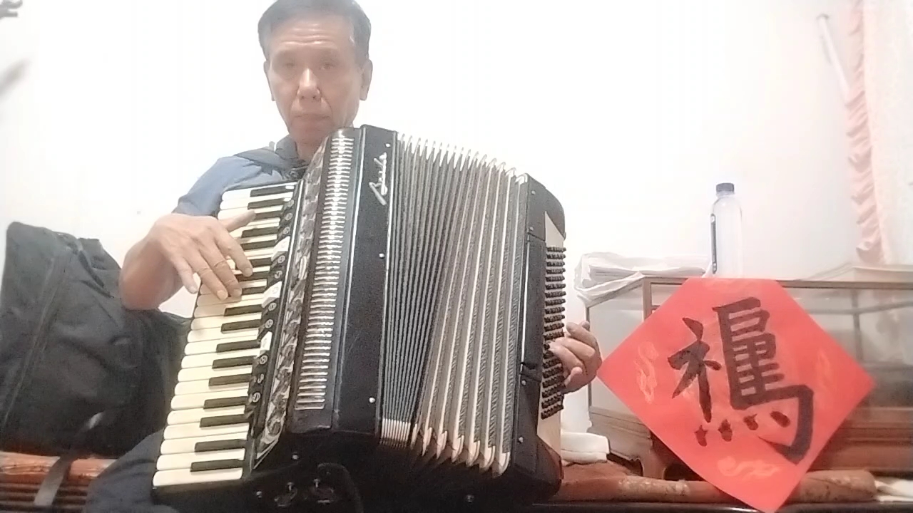 我书写几个字,配乐是我的手风琴演奏《欢送进行曲》。