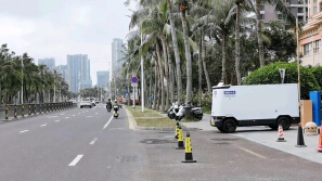 无人驾驶汽车行走在金沙湾