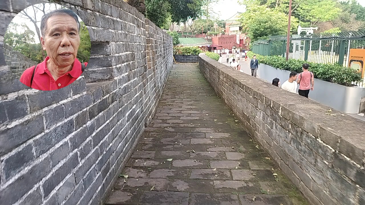 漫步在具有600多年历史的广州明代城墙上面。