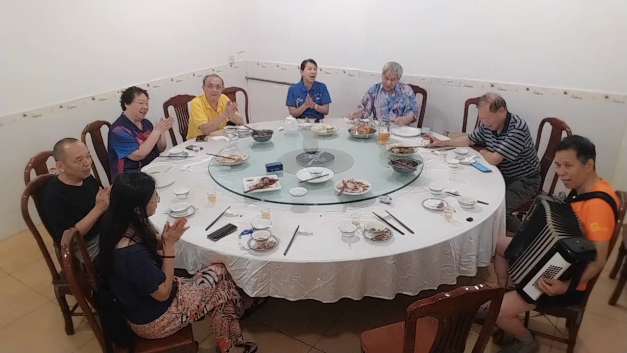 我手风琴伴奏华丽宫书画老师们演唱《牡丹之歌》。