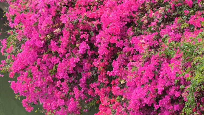 西乡河畔簕杜鹃如霞绽放,白鹭翩跹共谱初夏画卷