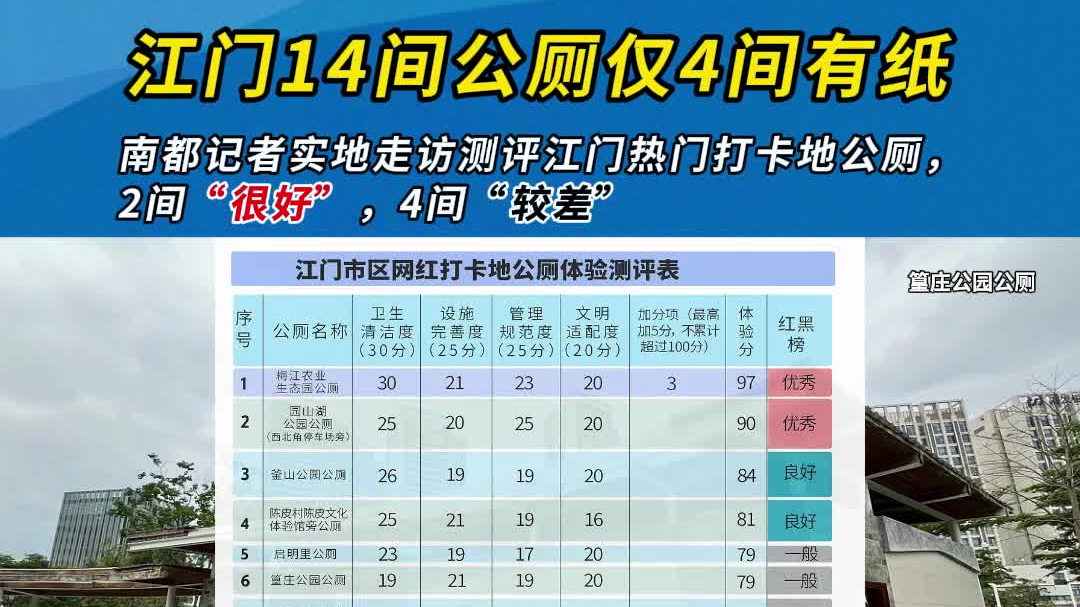 14间公厕仅4间有纸!南都走访测评江门热门打卡地公厕