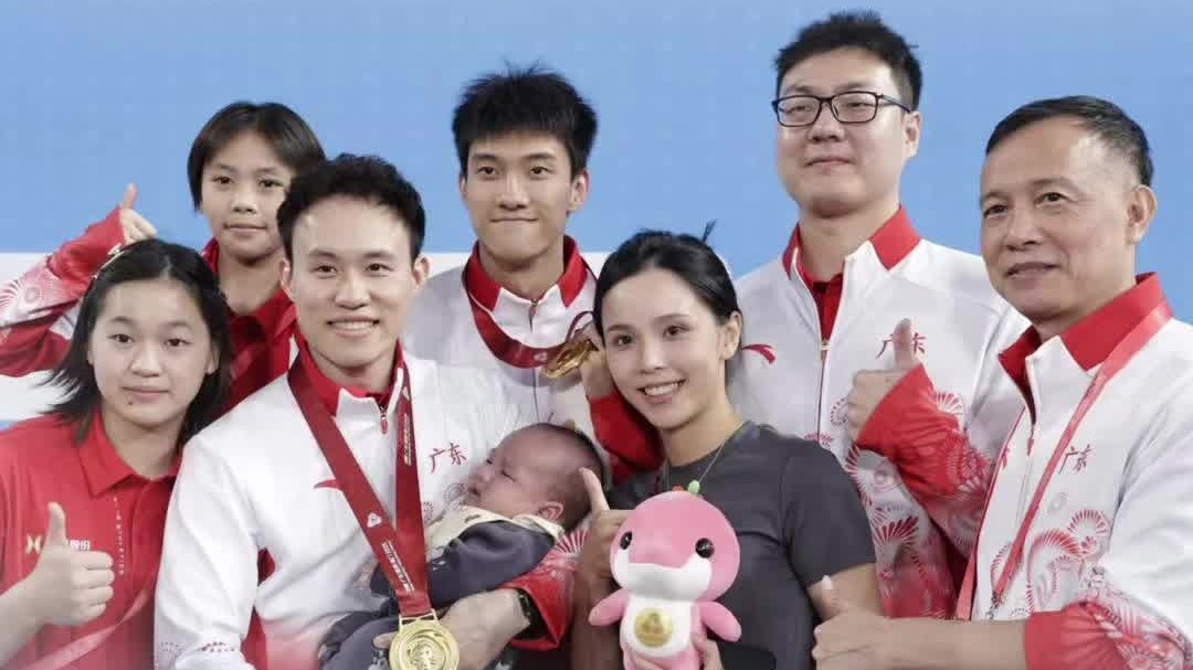 广东跳水男团八连冠!谢思埸妻子带着宝宝现场见证