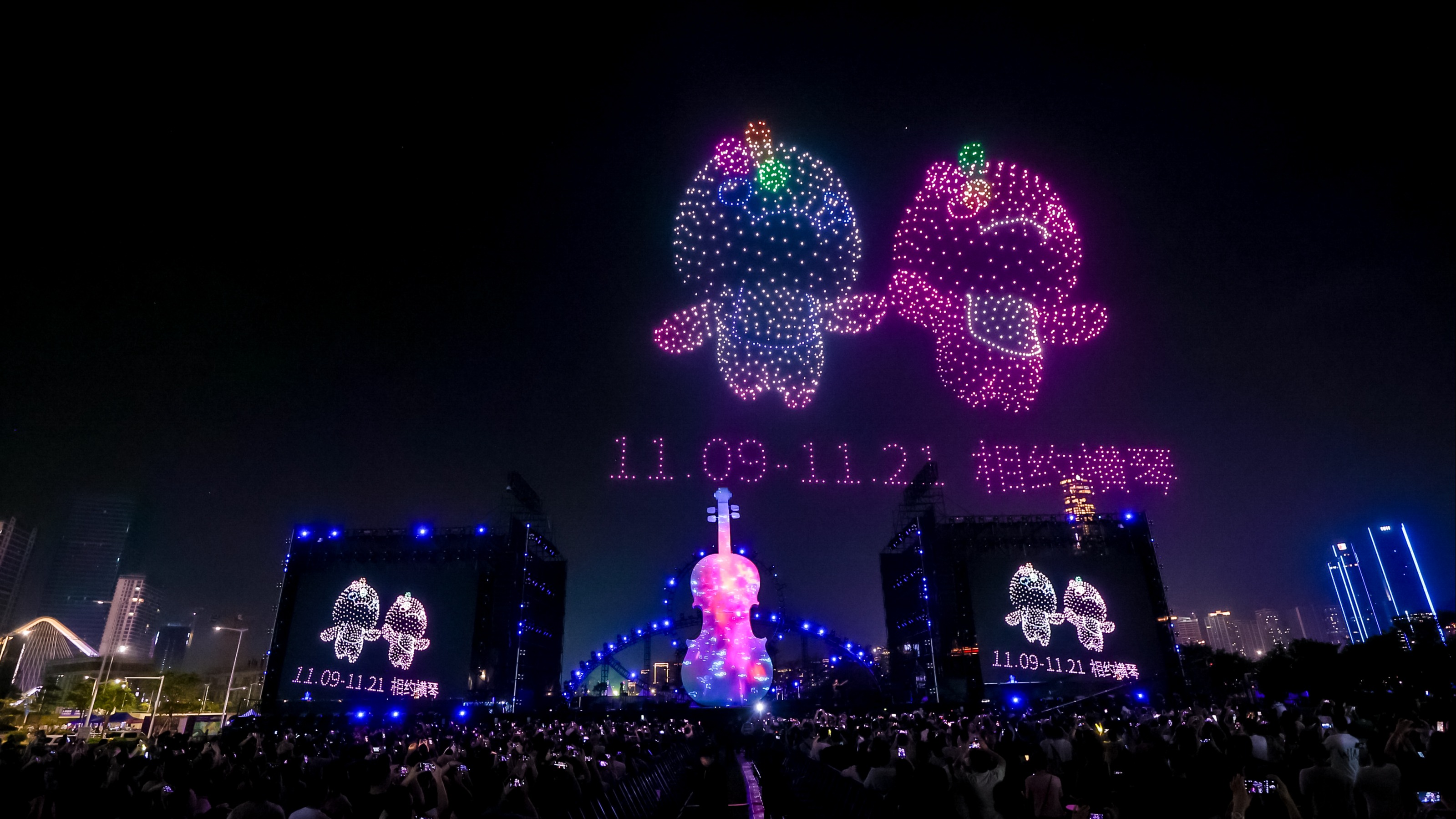 为深圳庆祝生日! 无人机灯光秀表演双主场同时举行