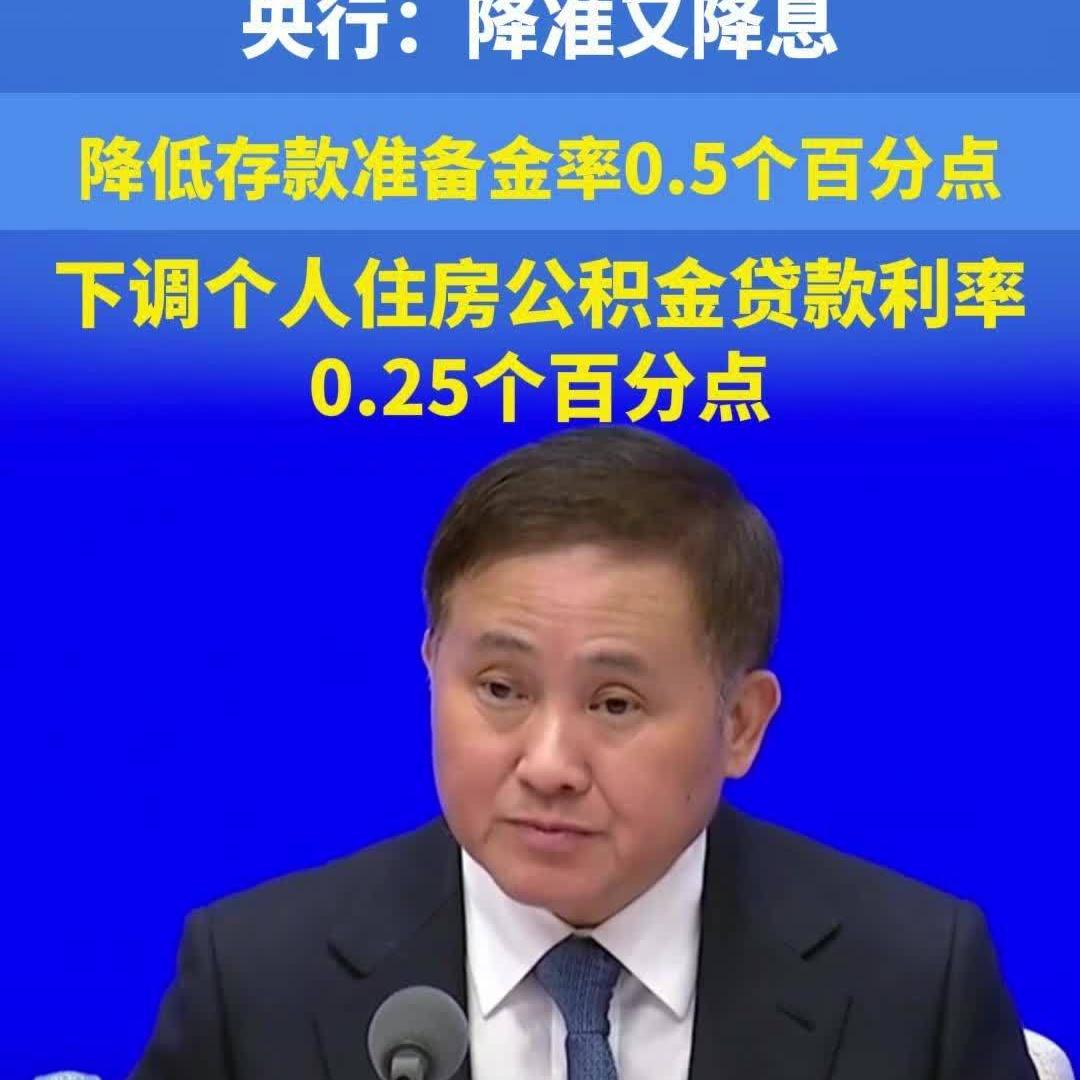 央行宣布降准降息!下调公积金贷款利率0.25个百分点!
