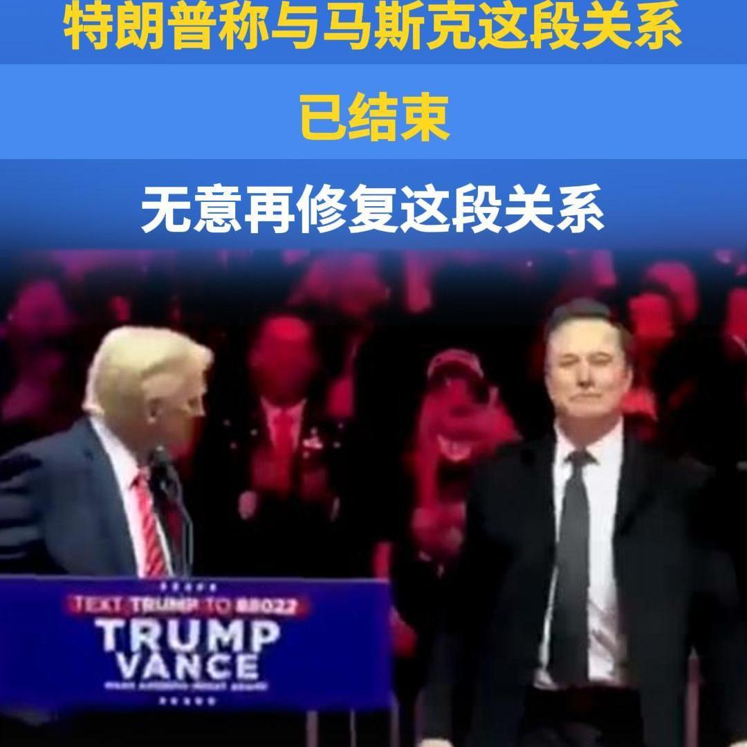 特朗普称与马斯克这段关系已结束,无意再修复这段关系
