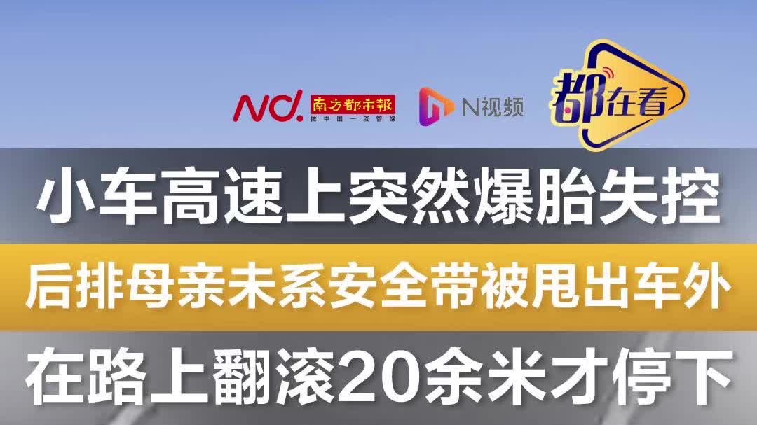 小车高速上突然爆胎失控,后排母亲未系安全带被甩出车外