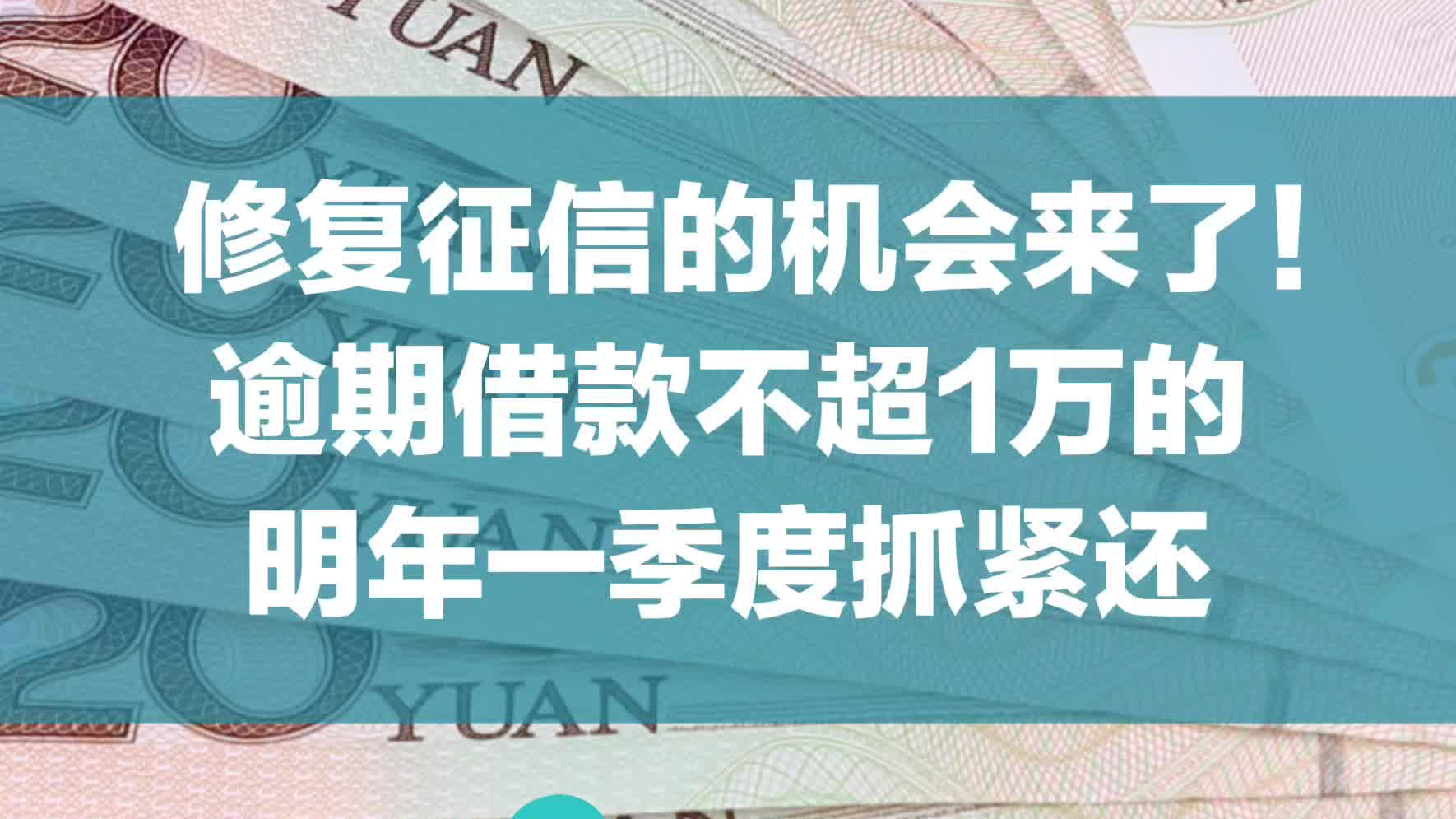 修复征信的机会来了!逾期借款不超1万的,明年一季度抓紧还