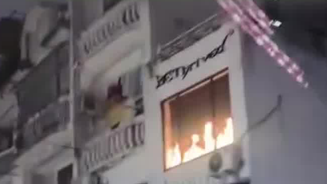 广州一商户悬挂火焰LED屏,引来5辆消防车“救援”