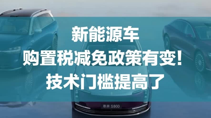 新能源车购置税减免政策有变!技术门槛提高了