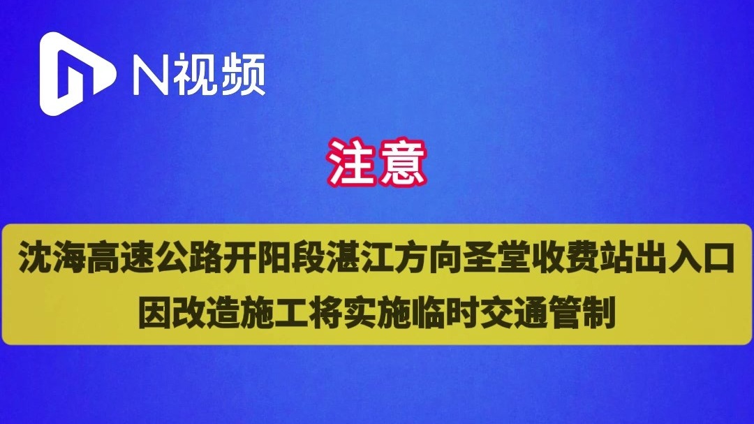 沈海高速公路开阳段湛江方向圣堂收费站出入口将实施交通管制