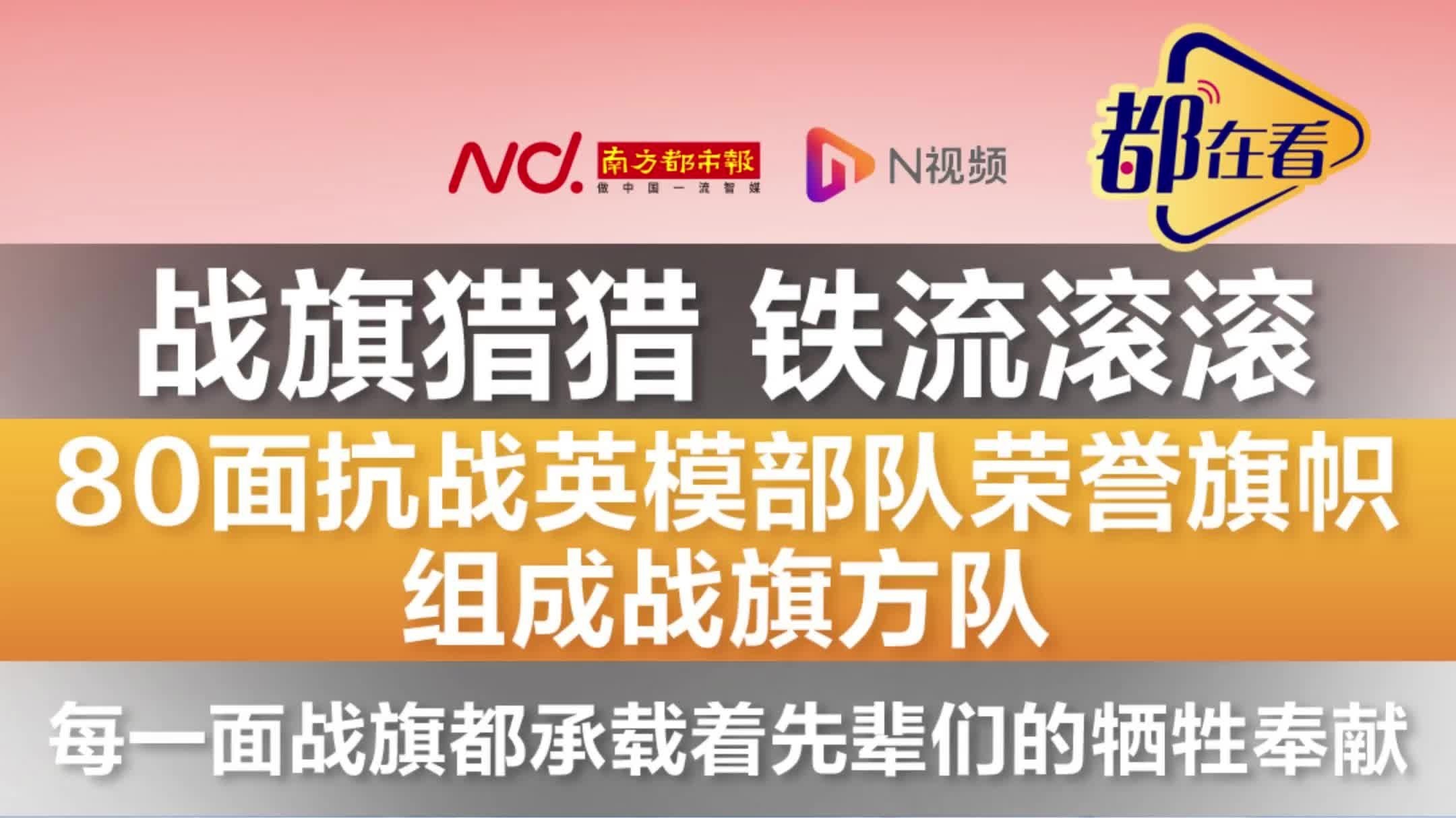 80面抗战英模部队荣誉旗帜组成战旗方队