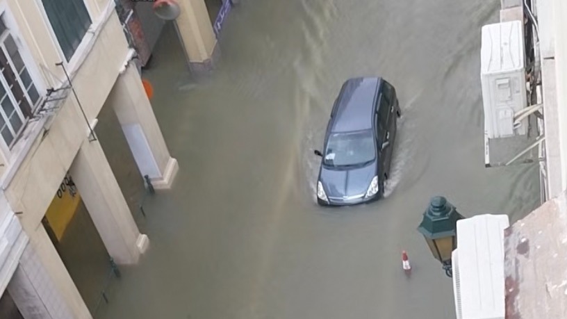 澳门悬挂十号风球,马路严重水浸,暂未见大量树木倒伏