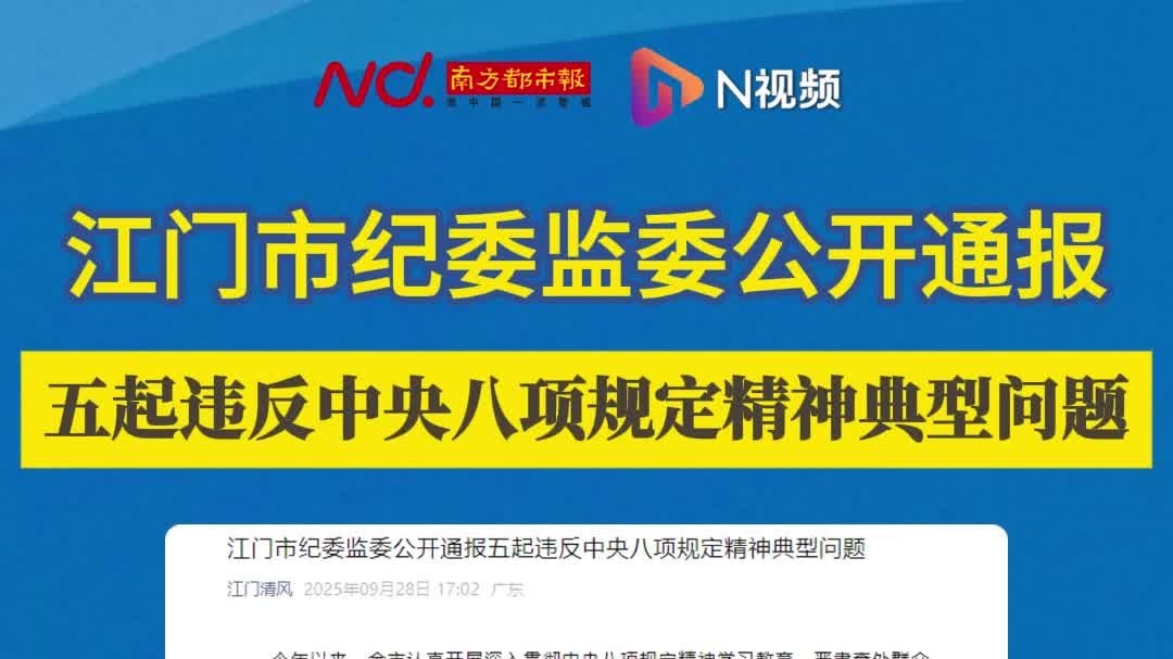江门市纪委监委公开通报五起违反中央八项规定精神典型问题
