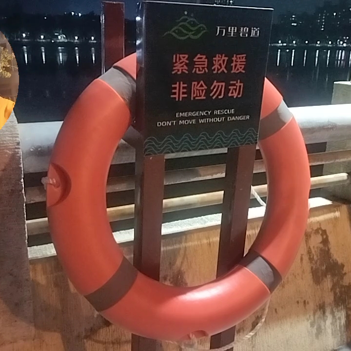 这是在万里碧道,三枝香水道边的救生圈。紧急救援,危险勿动