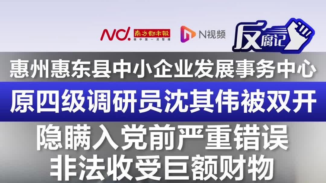 惠州惠东县中小企业发展事务中心原四级调研员沈其伟被双开