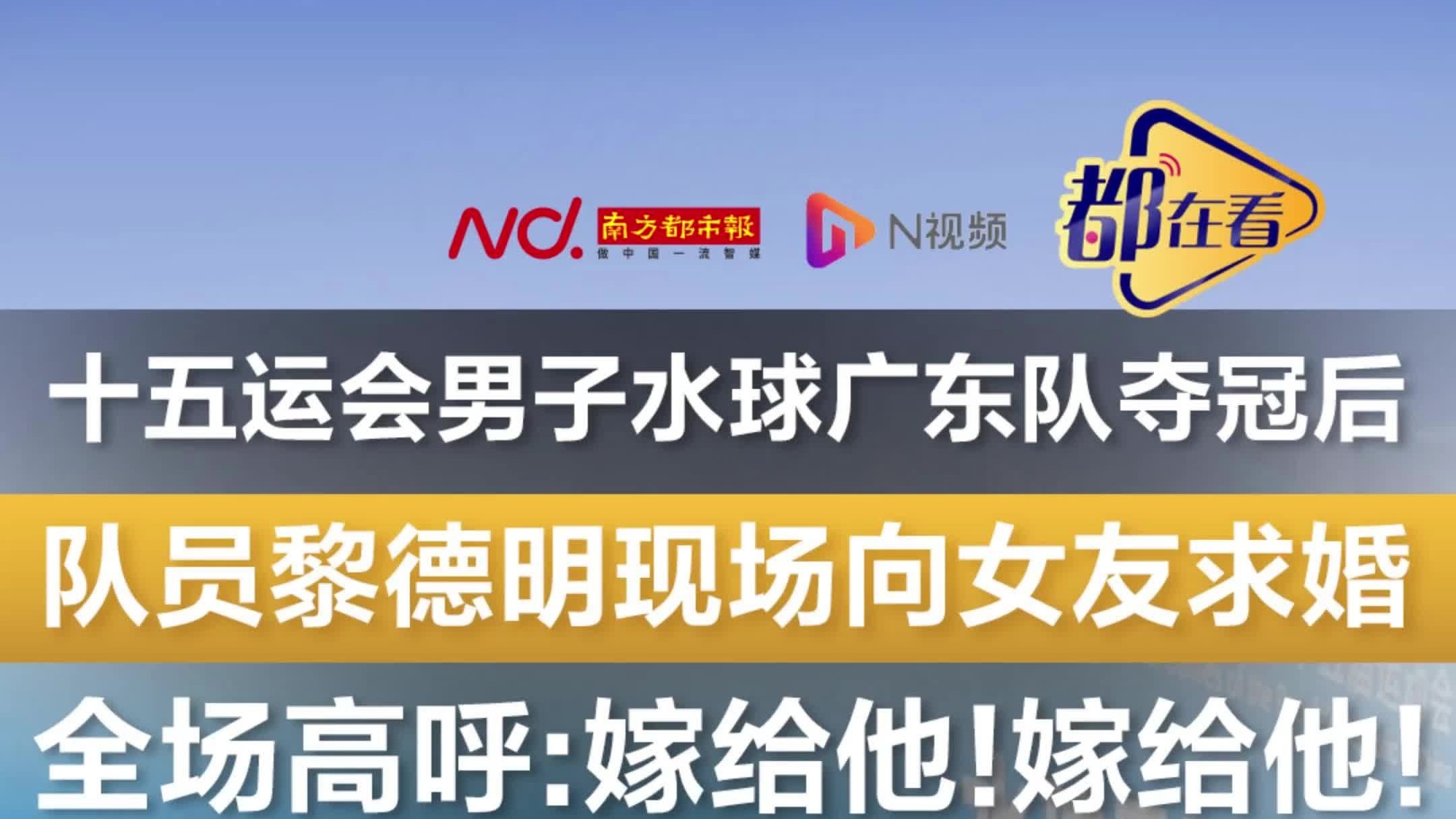 十五运会男子水球广东队夺冠后,队员黎德明现场向女友求婚