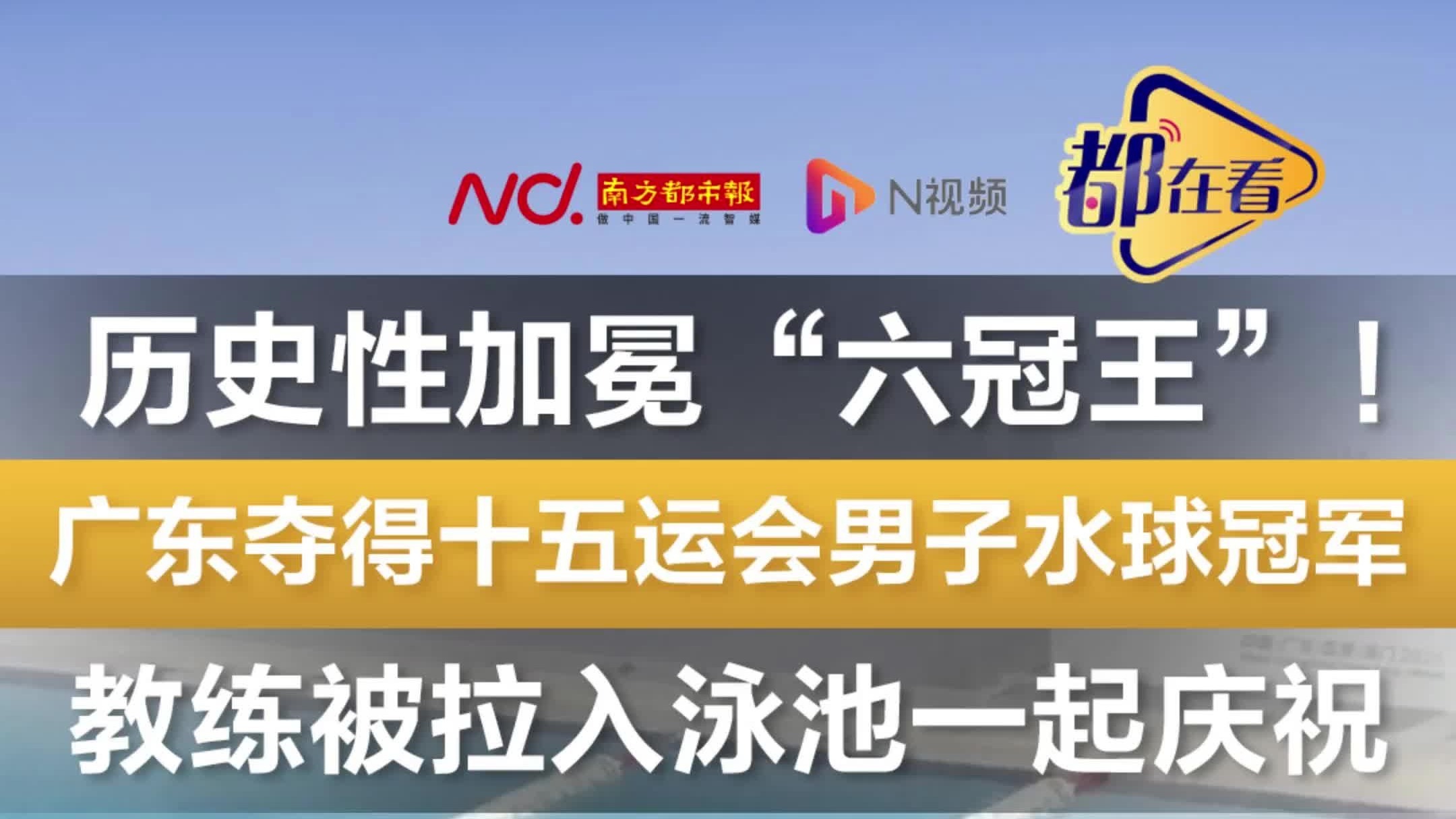 广东夺得十五运会男子水球冠军,教练被拉入泳池一起庆祝