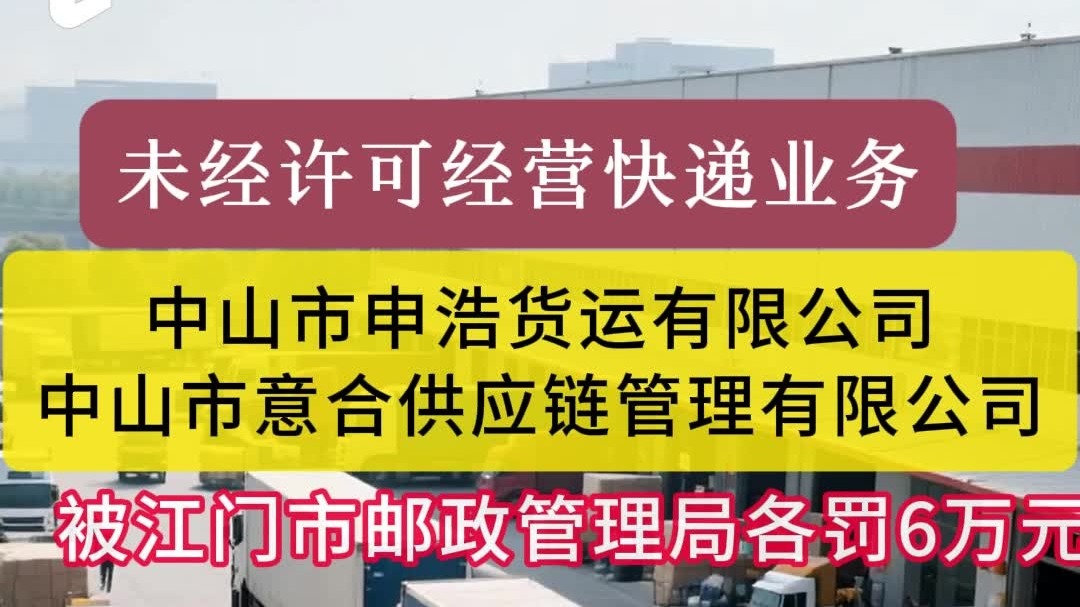 未经许可经营快递业务,中山两家公司分别被罚6万元