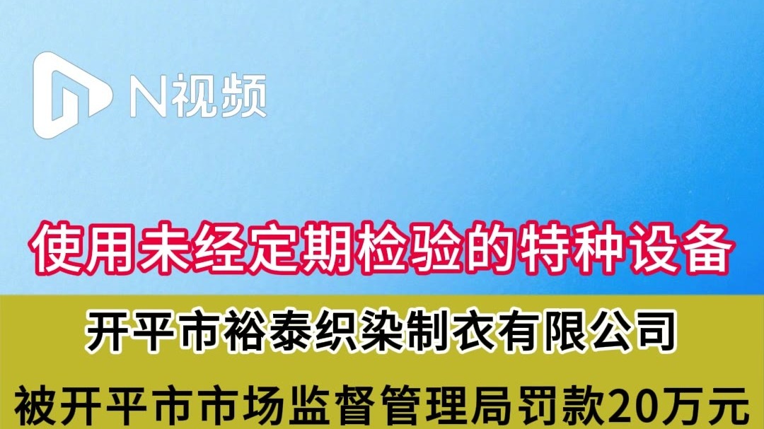 开平裕泰织染制衣使用未经定期检验的特种设备,被罚20万元