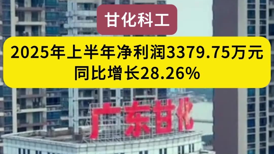 甘化科工上半年净利润3379.75万元,同比增长超28%