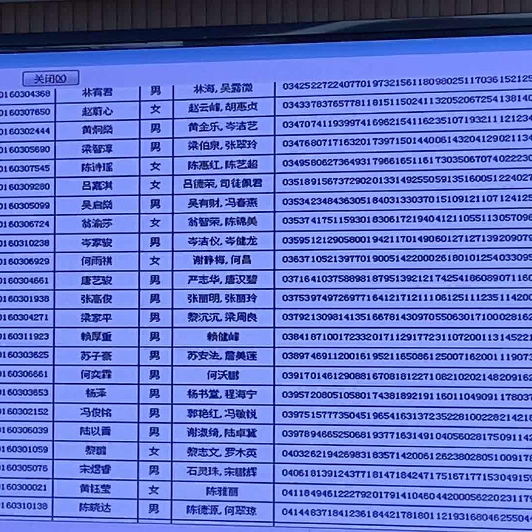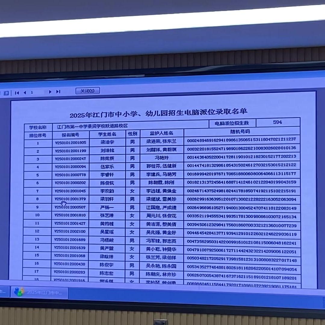 江门市第一实验学校初中部拟录取学生名单
