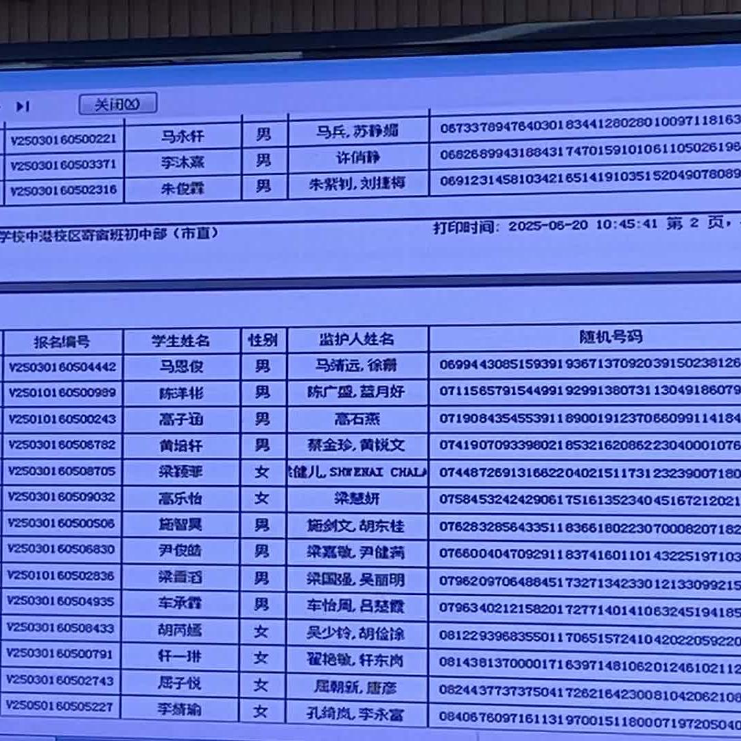 江门市第二中学校中港校区寄宿班初中部拟录取学生名单
