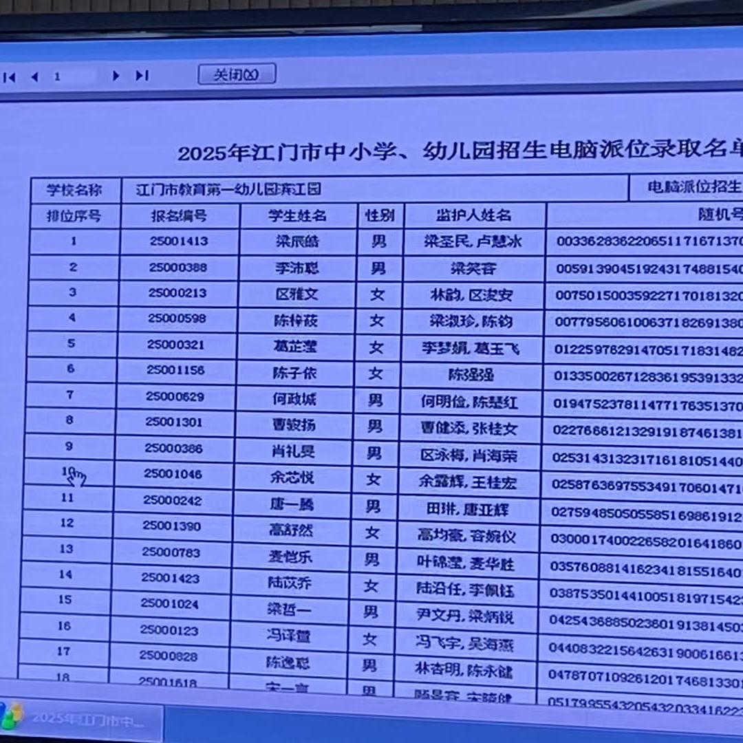 江门市第一幼儿园北新园拟录取学生名单