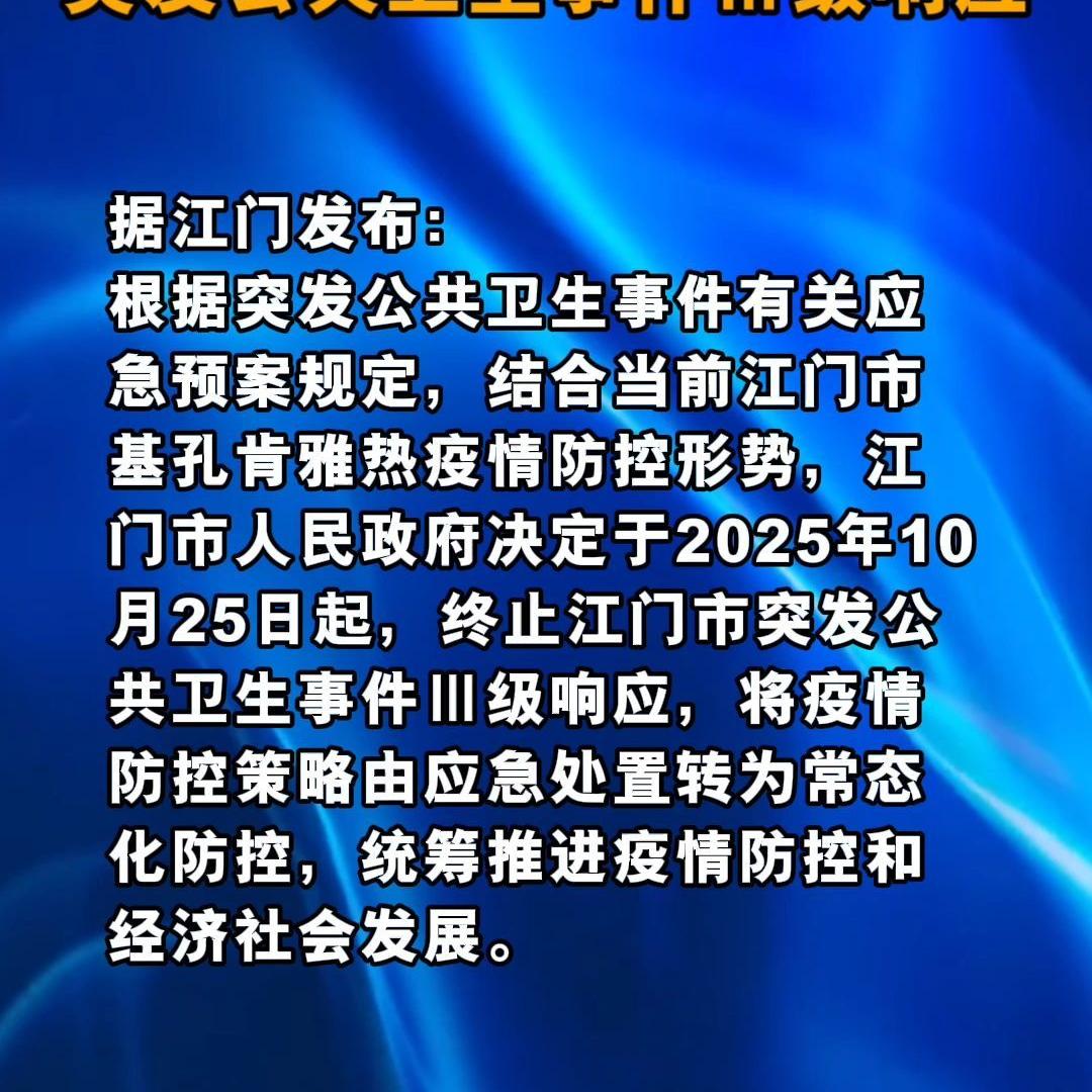 刚刚!江门市人民政府决定终止突发公共卫生事件Ⅲ级响应