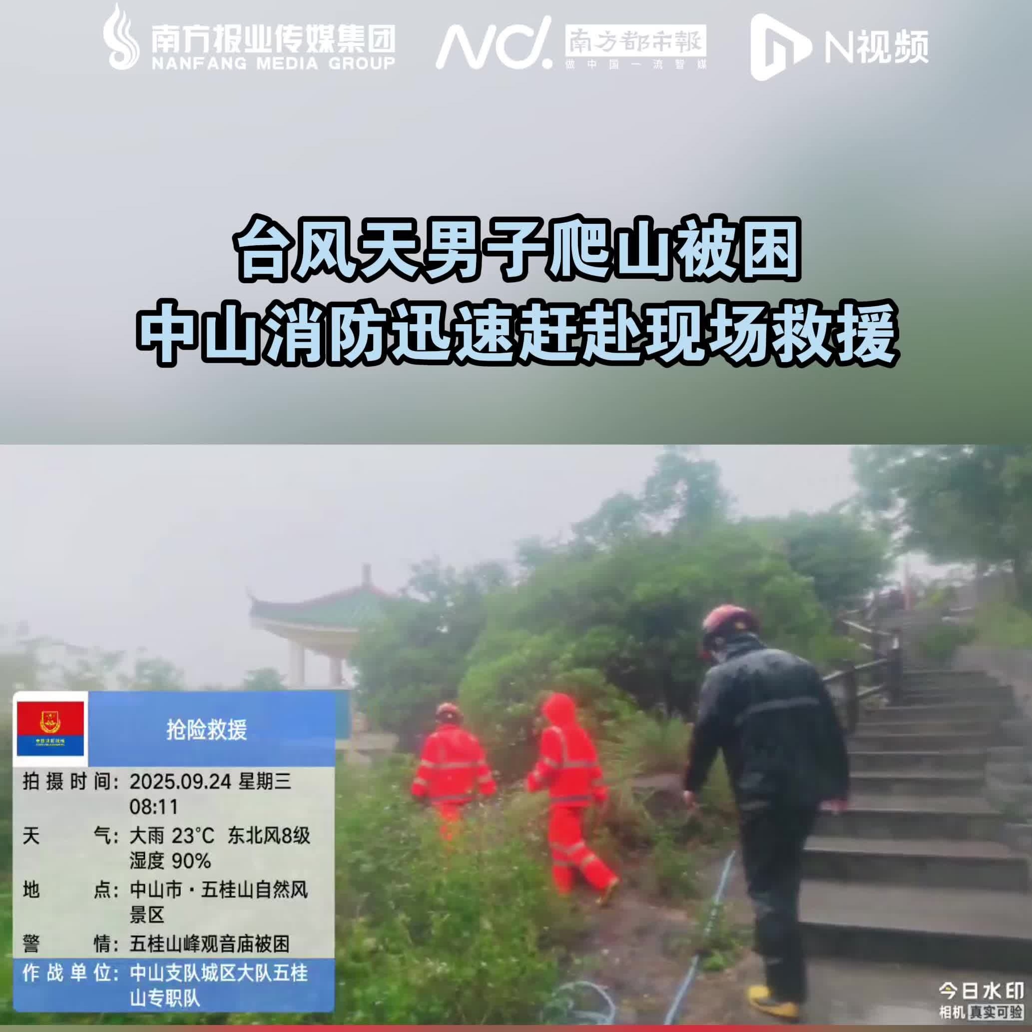 台风天男子爬山被困,中山消防迅速赶赴现场救援
