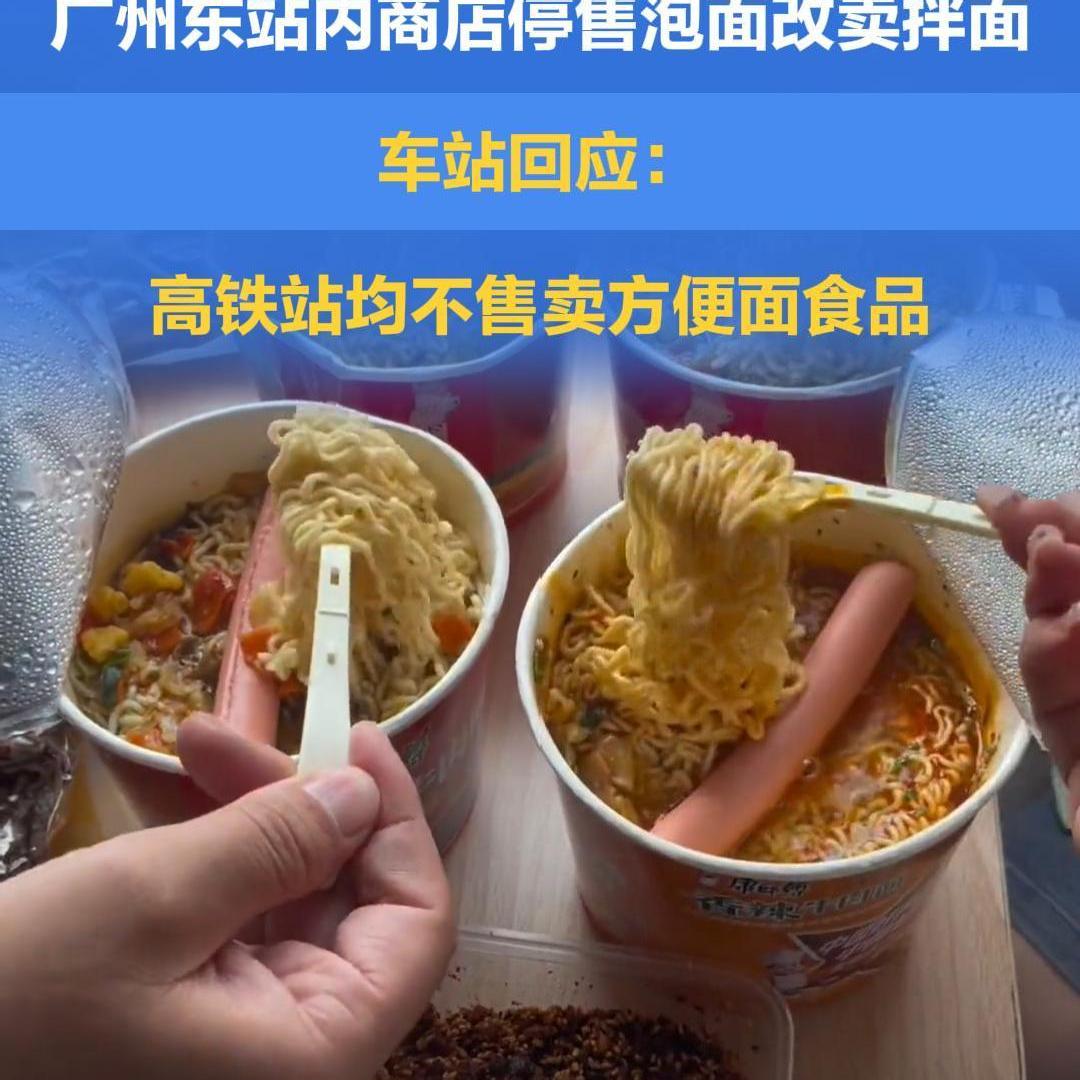 广州东站内商店停售泡面改卖拌面,车站回应:高铁站均不售卖方便面食品