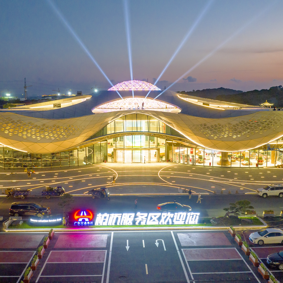 “荔枝”穹顶点亮粤西夜空,柏桥服务区开启亮灯测试