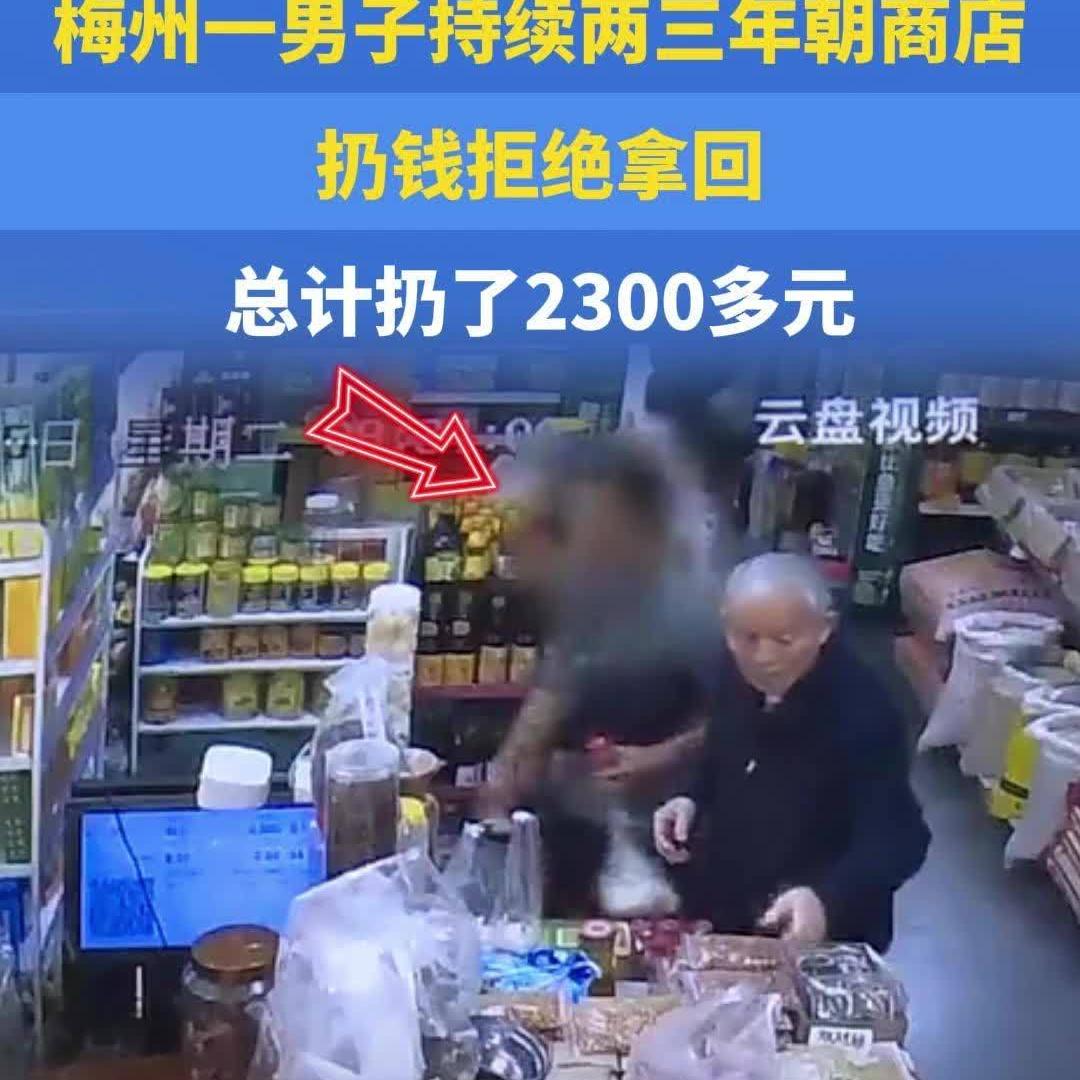 梅州一男子持续两三年朝商店扔钱拒绝拿回,总计扔了2300多元