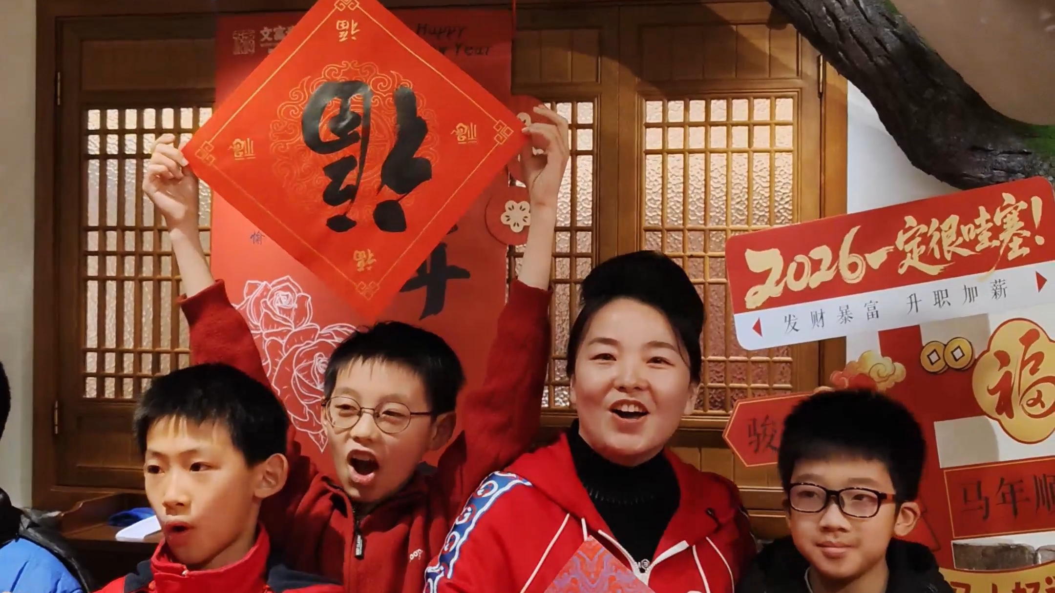 学生联手书法家,新年祝福满社区