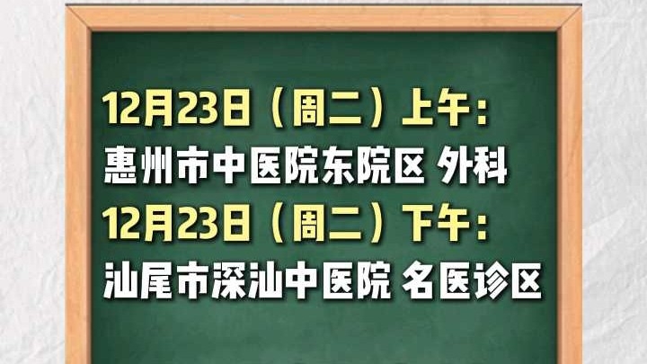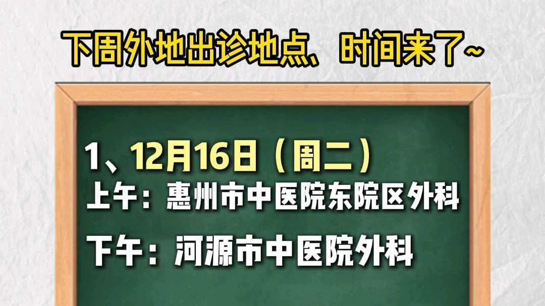 下下周将在惠州、汕尾、阳江、茂名出诊!需要朋友可就近挂号