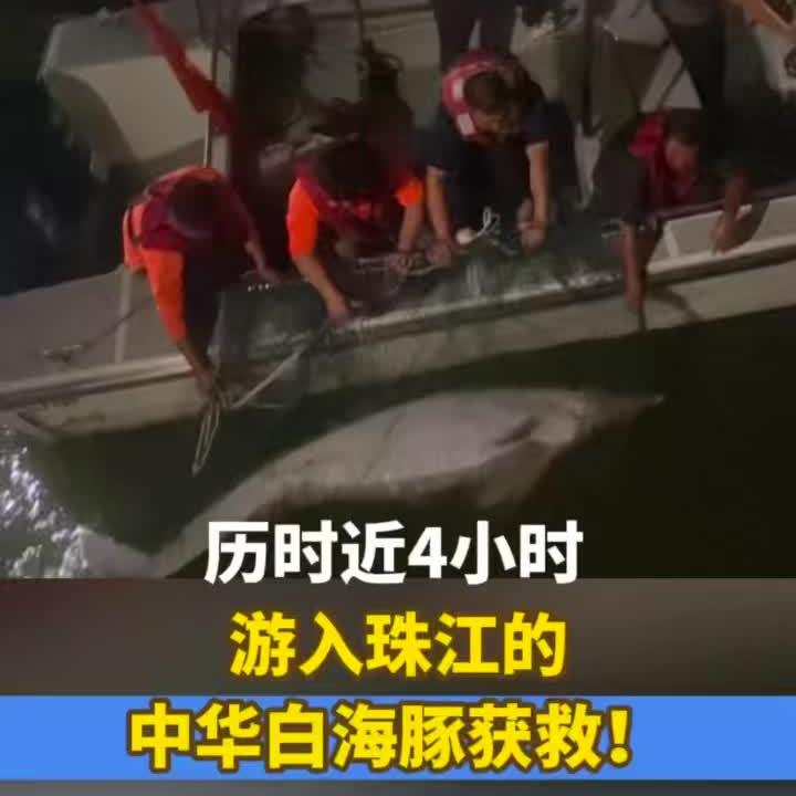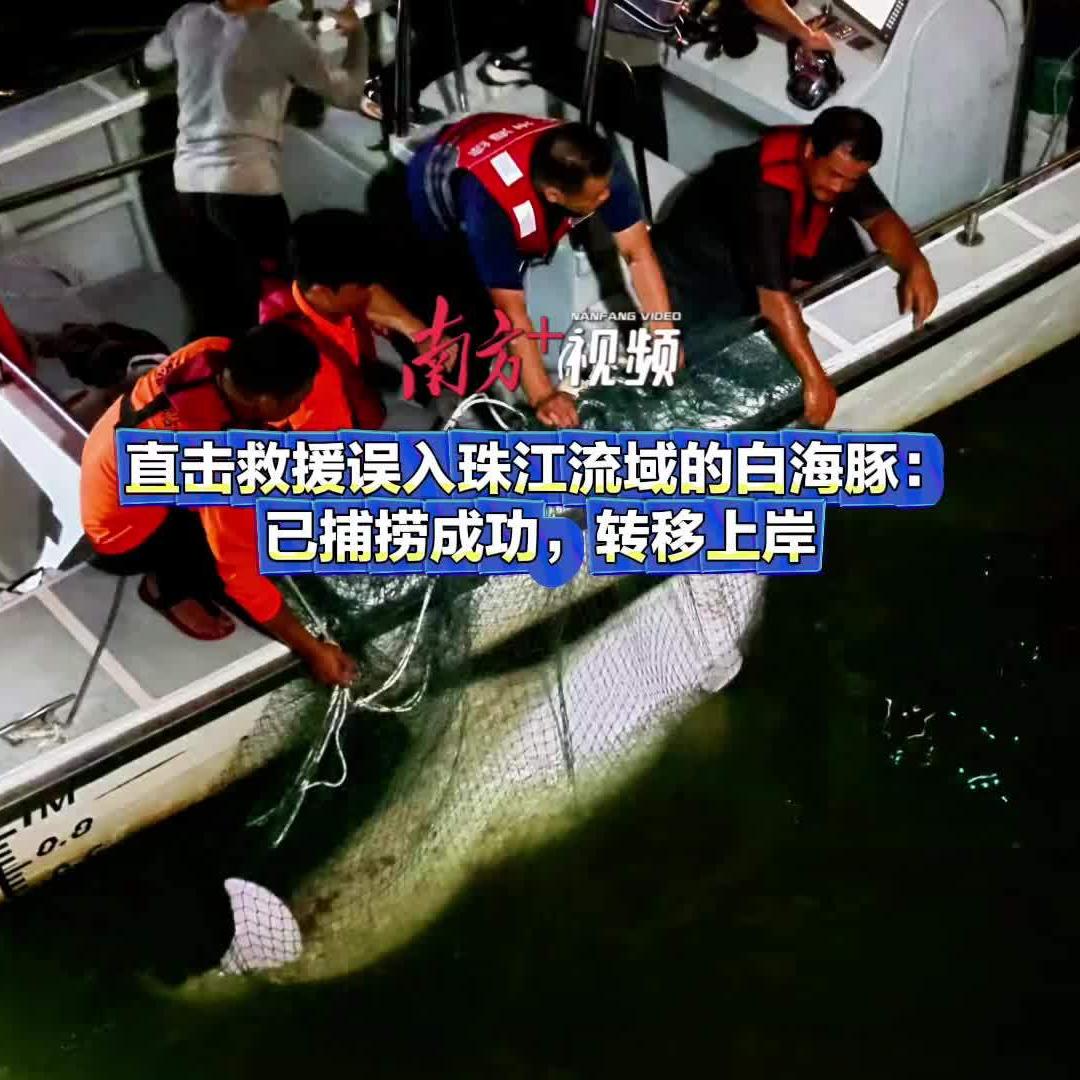 直击救援误入珠江流域的白海豚:已捕捞成功,转移上岸