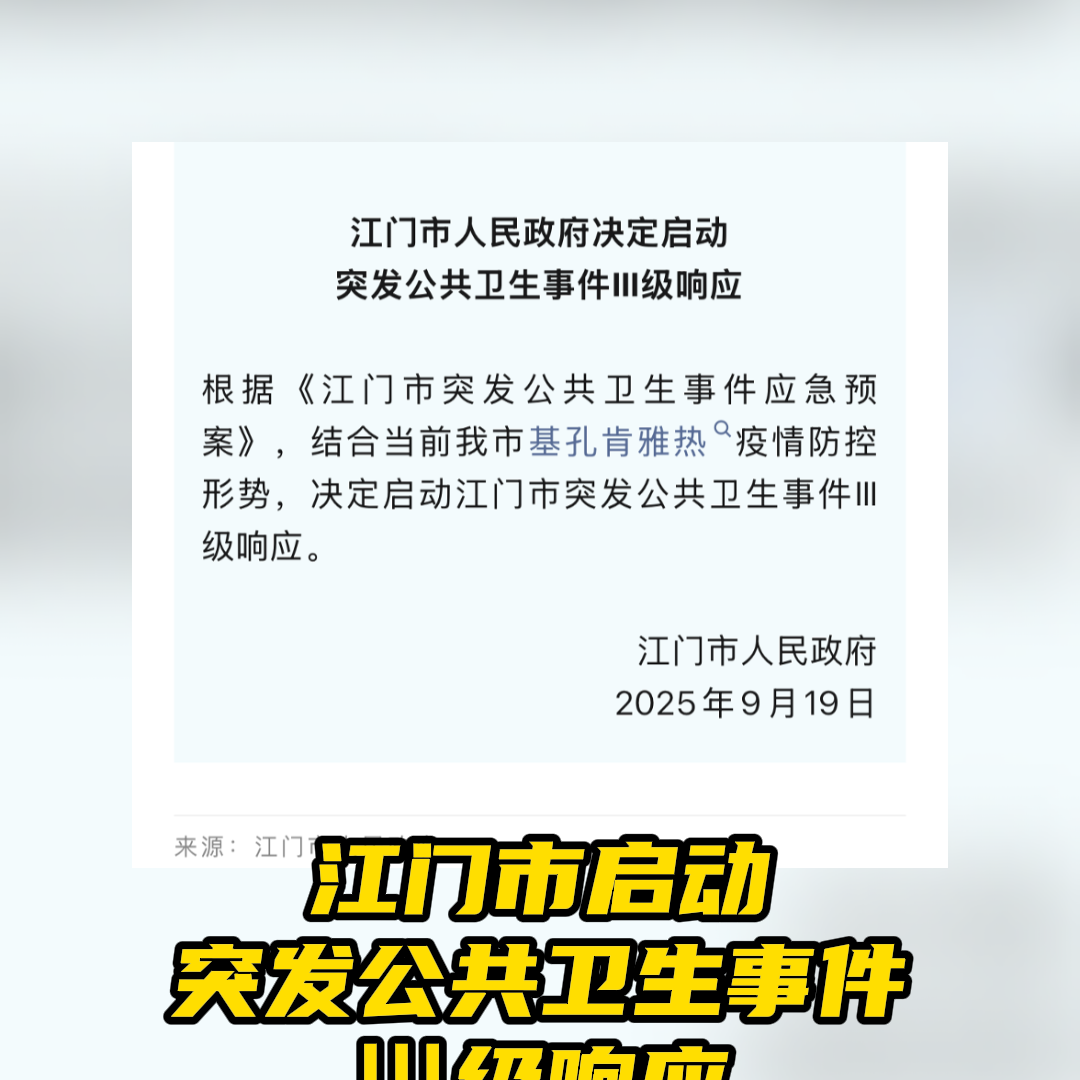 江门市启动突发公共卫生事件Ⅲ级响应