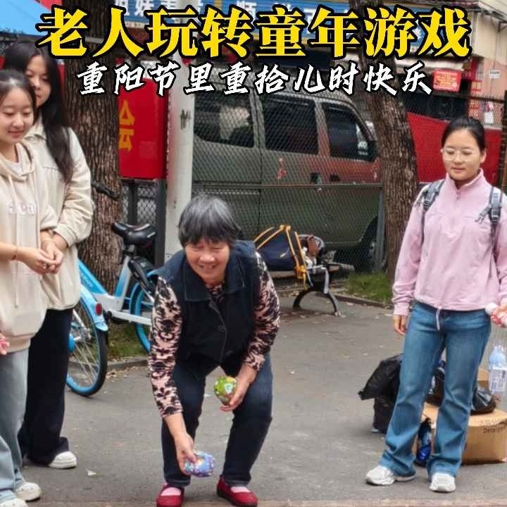老人玩转童年游戏,重阳节里重拾儿时快乐