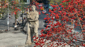 陵园西路木棉盛放,航拍记录广州专属“红棉大道”